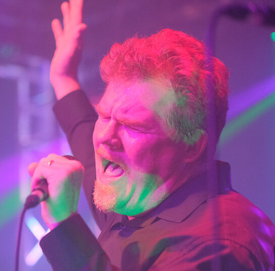 Zwischen zwei Versen haut er gern Sprüche raus, die die Band kurz aus dem Takt und das Publikum direkt ins Herz treffen.
